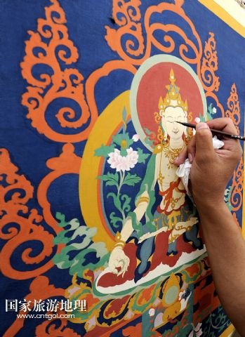 國家旅游地理 西藏拉薩8月4日訊 8月3日,一名畫師在現(xiàn)場演示唐卡繪制過程。當(dāng)日,第三屆西藏“唐卡藝術(shù)博覽會”在拉薩羅布林卡舉行,共展出89名優(yōu)秀畫師的230多幅精品力作。唐卡作為藏族特有的繪畫,有上千年的歷史,已成為藏族文化的“名片”,受到國內(nèi)外廣泛關(guān)注。 /新華社記者 覺果 攝