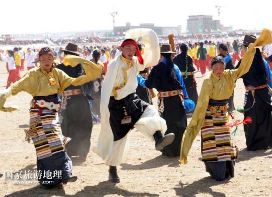 國家旅游地理 西藏那曲8月10日訊 8月10日,藏族牧民在進行跑馬比賽。當日,一年一度的藏北“恰青”賽馬藝術旅游節(jié)開幕,牧民們相聚那曲賽馬場,載歌載舞慶祝豐收。 /新華社記者唐召明攝