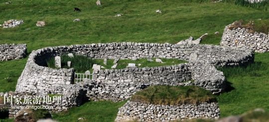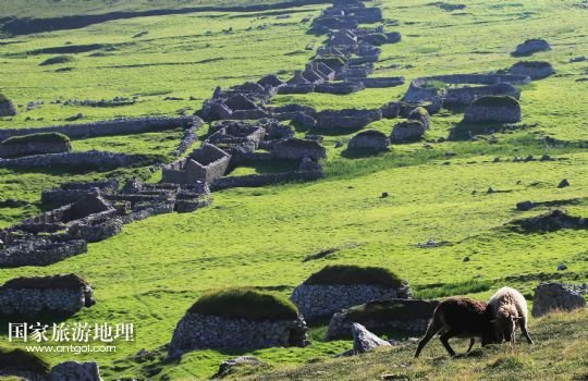國(guó)家旅游地理 英國(guó)倫敦8月14日訊 在圣基爾達(dá)島已經(jīng)遺棄的村落旁的山坡上,有用石頭圍墻圈起的一塊塊耕地。當(dāng)年在島上定居的村民在這些石圈內(nèi)鋪墊海藻,種植少量谷物。一個(gè)個(gè)形狀各異的石圈保護(hù)著這些寶貴的谷物免遭風(fēng)暴與家畜的侵害(7月19日攝)。