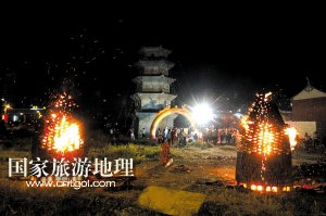 國(guó)家旅游地理 福建泉州9月20日訊(記者_(dá)黃偉強(qiáng) 秦越 文圖) 中秋夜,第三屆“燒塔仔”中秋民俗活動(dòng)在晉江安海安平橋畔白塔下舉行,兩座高4米、寬1.5米的磚塔里正冒著熊熊烈火,現(xiàn)場(chǎng)火光沖天,給安海老百姓帶來(lái)了別樣的節(jié)日歡樂。