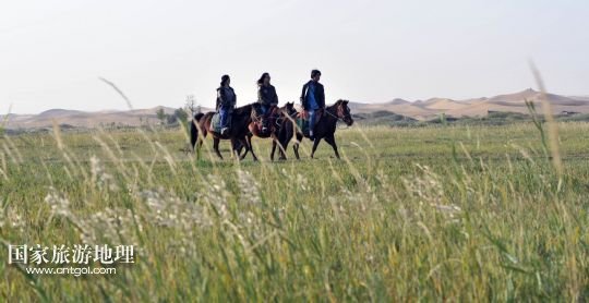 國(guó)家旅游地理 內(nèi)蒙古阿拉善9月29日訊 9月28日,游客在通湖草原景區(qū)騎馬。通湖草原景區(qū)位于內(nèi)蒙古和寧夏交界的騰格里沙漠腹地,景區(qū)匯集了沙漠、草原和湖泊,自然景觀(guān)獨(dú)特,吸引了眾多秋游的游客。 /新華社發(fā)(劉玉和 攝)