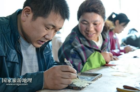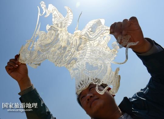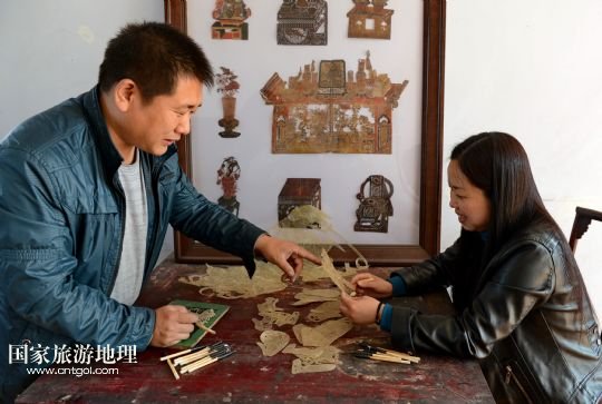 國家旅游地理 河北唐山4月2日訊 郭寶在檢查一件皮影藝術品的雕刻質量(3月30日攝)。河北省遷安市趙店子鎮(zhèn)馬古寺村村民郭寶自幼喜歡皮影雕刻,師承當?shù)氐窨趟嚾送跽淅舷壬?,他雕刻的影人造型古樸、工藝精細,深受皮影收藏愛好者的歡迎。2003年,郭寶成立了“郭寶皮影傳承工作室”,并從村里招來20多位喜歡皮影藝術的農民專門從事皮影雕刻。經(jīng)過幾年的發(fā)展,如今郭寶皮影工作室開發(fā)設計皮影工藝品3000余種,在傳承保護唐山皮影的同時還獲得了豐厚的收入。 /新華社記者楊世堯攝
