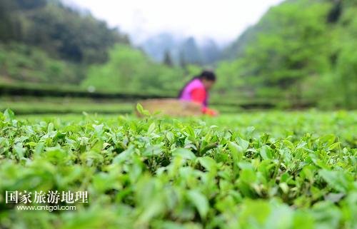 4月27日,柳溪村的村民在村內(nèi)的茶園采茶。