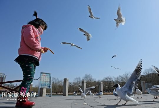 國家旅游地理 寧夏銀川3月10日訊 3月9日,在銀川市燕鴿湖,一位小朋友在喂食紅嘴鷗。近日,隨著寧夏銀川市各湖泊、濕地冰面融化,銀川市興慶區(qū)燕鴿湖迎來數(shù)百只紅嘴鷗在湖面飛翔覓食。近年來,銀川市持續(xù)加大對濕地的保護(hù)與恢復(fù),每年春季都有大批候鳥光顧,成為銀川市一道美麗風(fēng)景。 /新華社記者 王鵬 攝