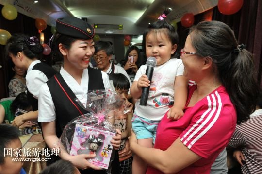 國家旅游地理 寧夏銀川6月1日訊 5月31日晚上,蘭州鐵路局銀川客運(yùn)段寧夏號列車上的一線乘務(wù)人員為乘坐列車的孩子們舉辦了一場“歡慶六一”迷你晚會,通過才藝展示和贈送小禮品,讓旅途中的孩子們感受到溫暖和歡樂。新華社記者 彭昭之 攝