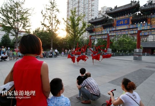 國家旅游地理 山東滕州6月14日訊 6月13日,在山東省滕州市老縣衙善國文化廣場,滕州柳琴劇團演員向市民展演柳琴戲。