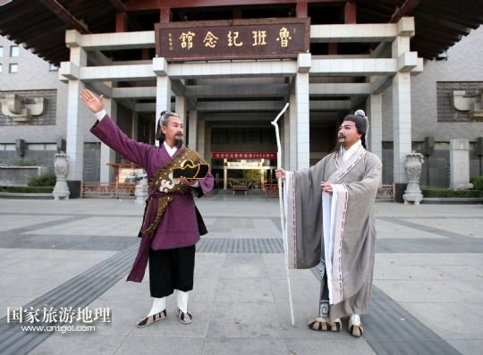 6月13日,在山東省滕州市魯班紀念館前,滕州柳琴劇團演員在彩排柳琴戲《墨子與魯班》。