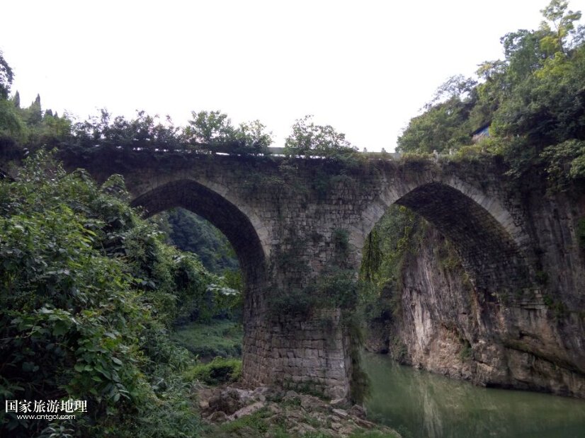 這是黔南福泉的葛鏡橋。葛鏡橋建造于明朝萬歷年間,距今已有四百多年的歷史,是當時的平越人葛鏡出資建造。當時造橋技術落后,加之洪水等自然因素,葛鏡造橋也費盡周折,造橋三次才最終建成葛鏡橋。葛鏡橋全長51.44米,3孔,大孔高9.61米,橋面寬8.5米,高約30米;三孔跨徑分別為25.62米、12.3米和6.26米;三孔拱高分別為9.61米、9.9米和5.02米。工程艱巨,雄偉壯觀,“為西南橋梁之冠”。葛鏡橋歷時數(shù)百年,至今仍堅固如初,實為罕見,也有“北有趙州橋、南有葛鏡橋”之稱。