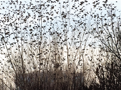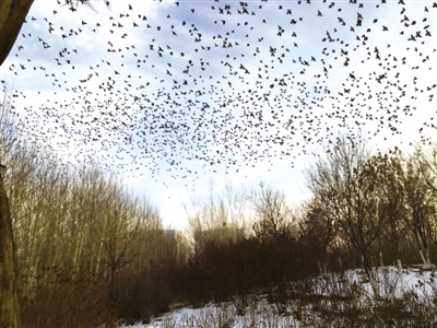 2015年12月30日下午,我在銀川市興慶區(qū)北塔公園游覽。走到北塔東北的樹林邊,突然看見一棵有些怪異的樹——數(shù)九寒冬,為何還有這么多樹葉?仔細(xì)一瞧,哪是什么樹葉,是數(shù)千只麻雀在樹上“開會(huì)”。密密麻麻,嘰嘰喳喳,無拘無束。我拿出手機(jī),剛拍了幾張,不知是聽了什么號(hào)令,麻雀?jìng)?ldquo;散會(huì)”了,瞬間全部飛向藍(lán)天,一個(gè)個(gè)狀如小飛機(jī)。看得出,麻雀?jìng)兺ο矚g銀川,活得挺自在。(通訊員 蓮子)
